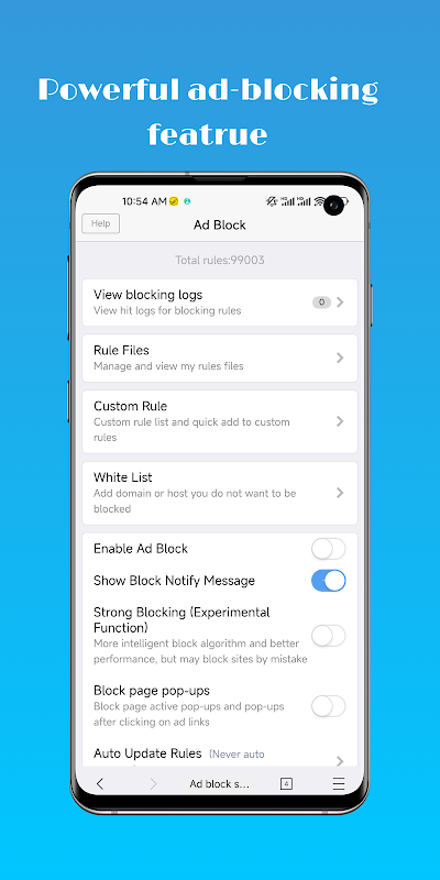 • Supports ABP (Adblock Plus) filter rules and custom rule lists