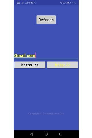 Example: If your Site URL is https://www.example.com , then you need to type in only example.com and click on https:// Button in the App.