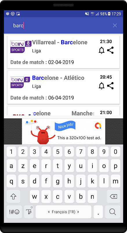 - Affichage de programme des matches de foot pour les prochaines jours.