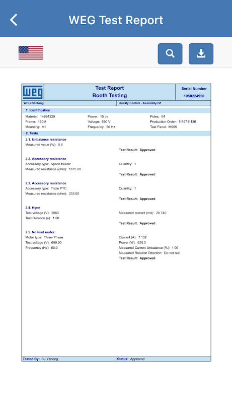 The WEG Test Report app allows WEG customers to quickly and easily obtain information about the electric motor tests that were performed on the WEG production line just scanning the DataMatrix Code provided in the engine nameplate.
