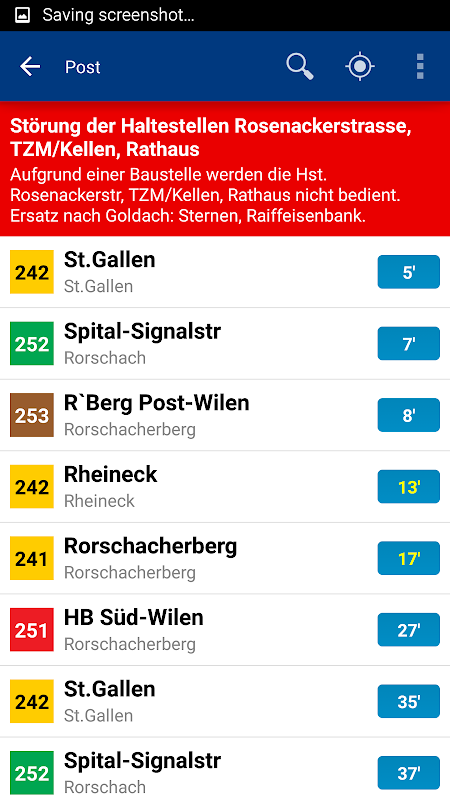 Las paradas se pueden seleccionar fácilmente de una lista o se pueden encontrar utilizando "Localizarme". Los horarios de salida se actualizan automáticamente. Después de seleccionar la línea de transporte, se muestra su ruta completa con los horarios de salida junto con las posibles conexiones.