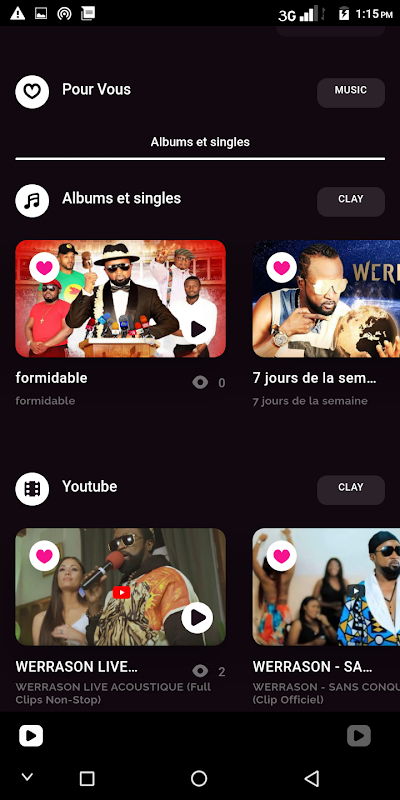 Dans une seule application ClayMusic on peut retrouver toute les chansons classée par albums et les clips vidéos tirée sur Youtube, qu’on peut lire directement dans ClayMusic
