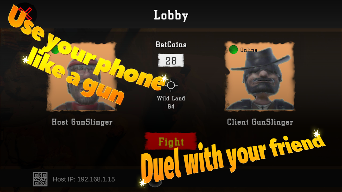 El jugador puede batirse en duelo con un amigo, usar el teléfono como arma, girar, apuntar y hacer clic, apretar el gatillo como un arma real. Organiza una fiesta improvisada en cualquier lugar con cualquier persona gracias a un nuevo estilo de juego en el que los jugadores se miran entre sí, ¡no a la pantalla! Lleva la acción y la diversión al mundo real mientras te enfrentas en duelos en el salvaje oeste. El juego aprovecha tu teléfono de diferentes maneras. Mientras la acción se desarrolla fuera de la pantalla, el público observa a los jugadores en lugar de a la pantalla. Eso hace que sea tan divertido verlo como jugarlo.