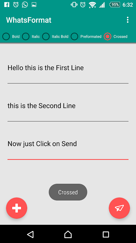 Whats4Mat Allows you to s=choose between 5 Text Formats and share the formatted text via WhatsApp