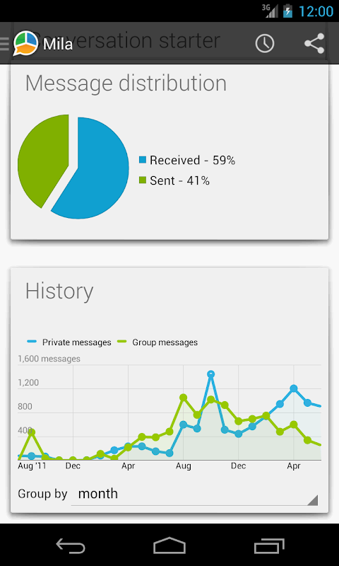 ¡Averigualo! Mira tus amistades y averigua quien empieza la mayoría de la conversación, que días eres mas activo y a que hora mandas la mayoría de los mensajes. ¿Interesado en saber cuantos mensajes envias a la semana... o al mes? WhatStat te lo enseña todo!