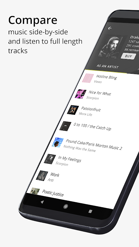 - Compara canciones en paralelo y escucha temas completos en streaming a través de YouTube (donde esté disponible).