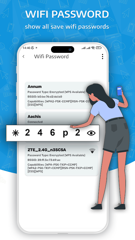 Con la aplicación de análisis de WIFI, puede obtener información sobre el rendimiento de su red WiFi sin esfuerzo, lo que garantiza una experiencia de conexión fluida y confiable. Esta aplicación de ahorro de contraseña de WiFi seguramente lo ayudará ya sea que esté en casa, en la oficina o en cualquier otro lugar. Esta aplicación de recuperación de contraseña de WiFi le permite optimizar su configuración de WiFi para obtener la máxima eficiencia.