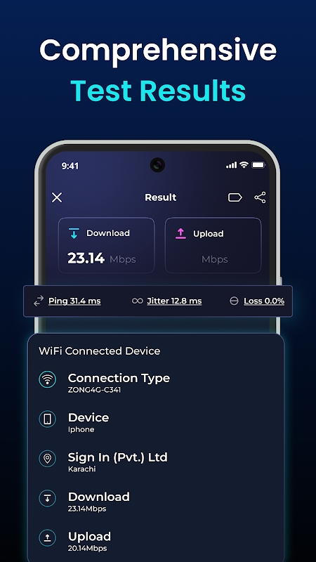 Con la prueba de velocidad de Internet, puedes comprobar fácilmente la velocidad de WiFi con un solo clic. Nuestra aplicación ofrece pruebas amplias de velocidad de Internet, incluidas velocidades de ping, descarga y carga. Puede utilizar la prueba de velocidad de WiFi para ver si su WiFi es fuerte, normal o débil.
