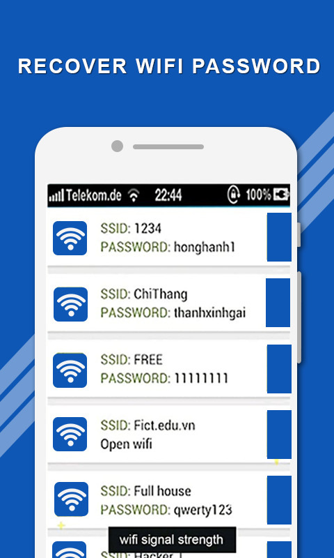Wifi Key Recovery te ayudará a recuperar todas las contraseñas del Wifi guardado. Copiarás fácilmente las contraseñas wifi si olvidas la red, o puedes compartirlas con tus amigos. Esta aplicación funciona como clave de contraseña Wifi Show, visor y buscador de contraseña Wifi.