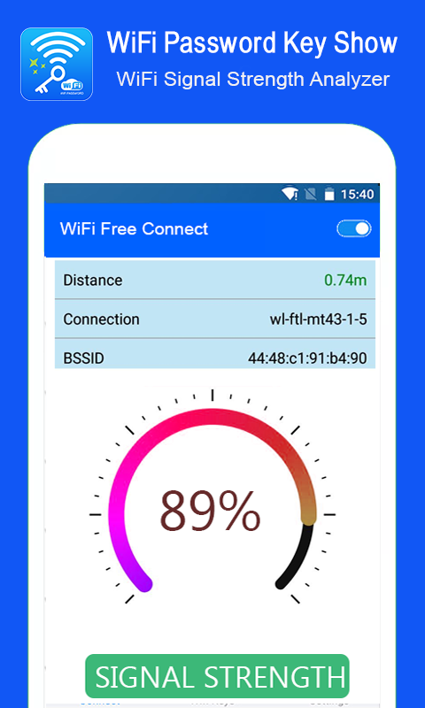 Wifi Password Show también tiene la función de intensidad de la señal wifi con la que puede analizar el SSID de la red wifi, la intensidad de la señal.