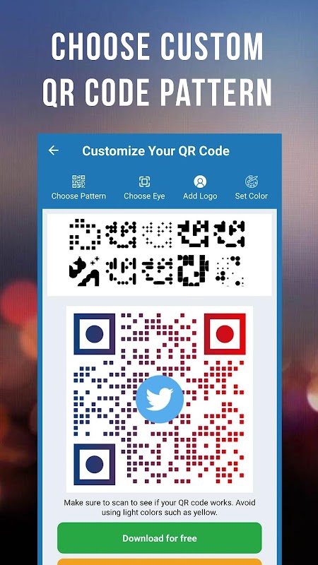 ● Personalice su código QR configurando el patrón y los colores. ¡Incluso puede agregar un logotipo o imagen!