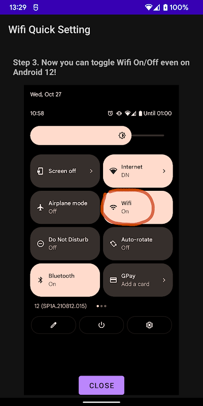 Si desea el antiguo mosaico de configuración rápida para Android 12 solo para Wifi, no la configuración completa de Internet, esta aplicación podría ser para usted. Después de la instalación, puede editar el menú de configuración del sistema superior y arrastrar el mosaico a donde desee. Tenga en cuenta que esta aplicación no funcionará en su dispositivo a menos que la haya rooteado.