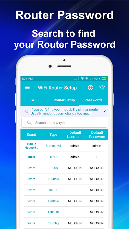 WiFi Router Setup es la aplicación más simple que le permite encontrar la página de configuración de su enrutador, la contraseña del enrutador o detectar quién está en mi wifi y puede bloquear al extraño en la página de administración del enrutador.