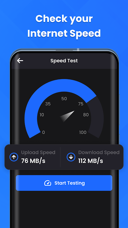 Speed Tester para probar los detalles de velocidad de carga y descarga de su red actual.