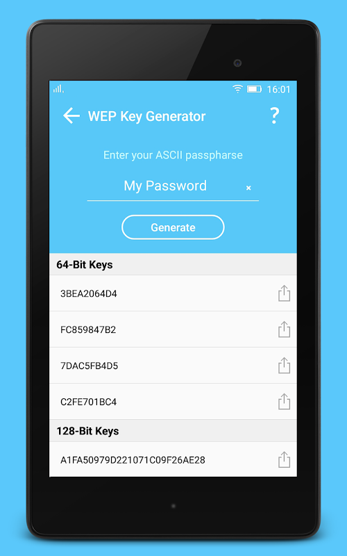 WiFi Utilities is equipped with a high performance utilities produce maximum and secure use of network and device. It allows you to generate Wired Equivalent Privacy (WEP) or Wi-Fi Protected Access (WPA) keys for your wireless network.