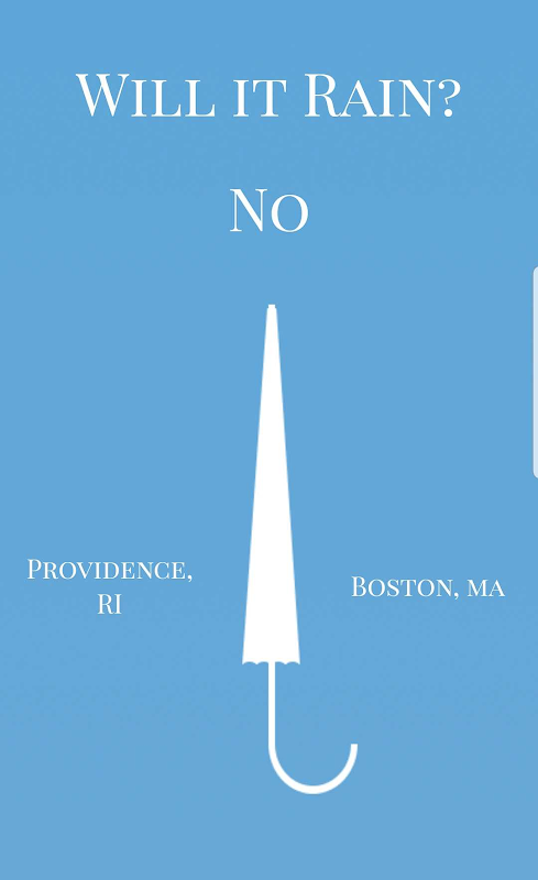 Will it Rain lets you put in two locations, and will show you whether you need to bring an umbrella. This app is ideal for commuters who travel between cities.