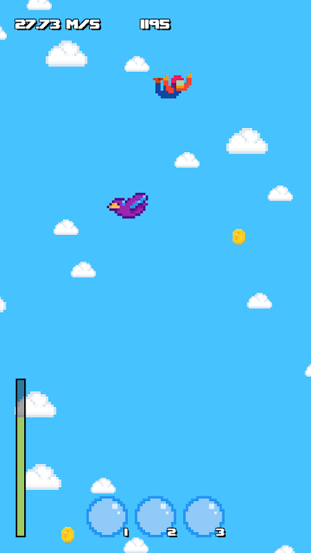 En Sin Paracaídas, debes batir tus "alas" (brazos) lo más rápido posible para intentar retrasar lo inevitable. Por el camino, puedes recolectar monedas que te ayudarán a comprar increíbles potenciadores que aumentarán aún más tus posibilidades de alcanzar la fama y la gloria en los cielos. Curiosamente, la tienda de objetos no vende paracaídas de verdad...