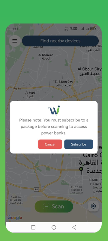 Alquile un Power Bank: escanee el código QR en la estación para desbloquear y alquilar un power bank.