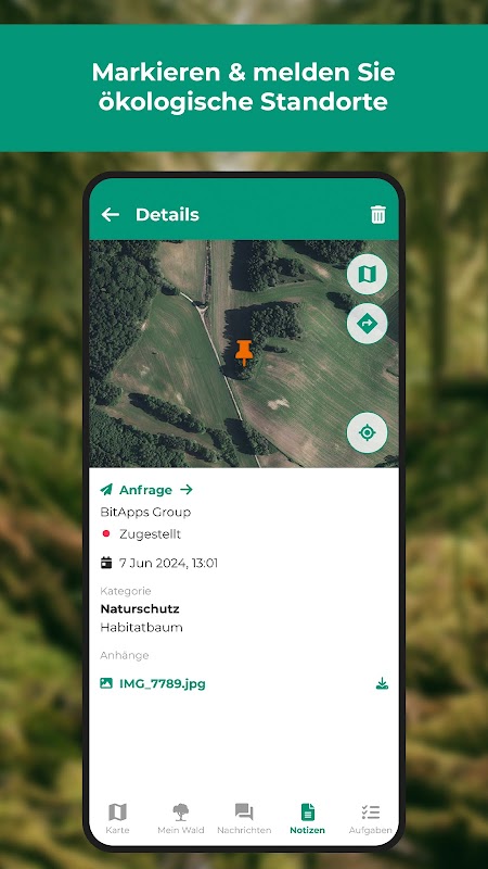 Acceda a su mapa de parcelas, controle la salud de su bosque, marque características importantes y registre observaciones directamente en su mapa móvil.