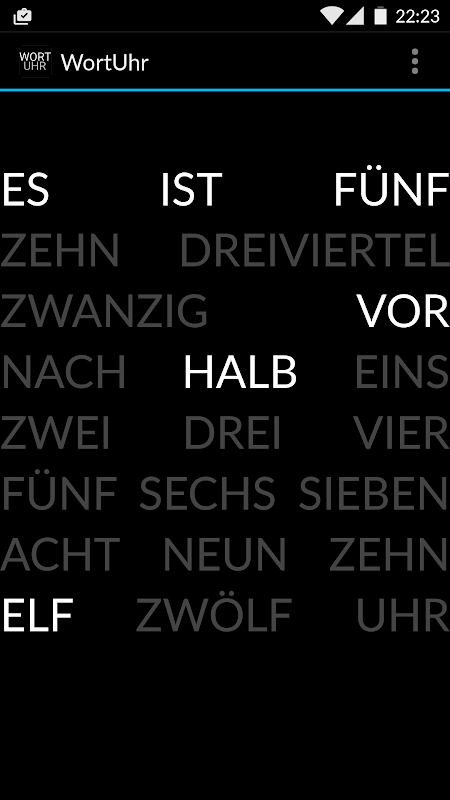 Zeigt die Uhrzeit als Text an, mit erleuchteten Elementen für die aktuelle Uhrzeit. Optional können verschiedene Dialekte oder Mundarten für die Uhrzeit hinzugekauft werden. Es sind diverse Dialekte für die Räume Bremen, Frankfurt/Main, Ludwigshafen, Wien, München, Berlin sowie natürlich diverse Dialekte aus dem Saarland und Rheinland Pfalz enthalten.