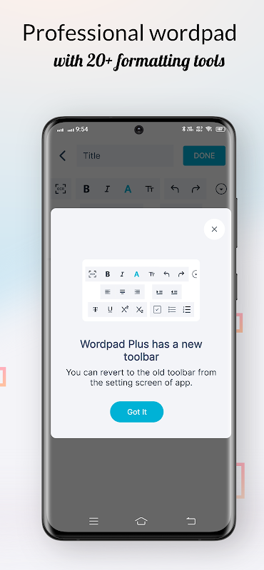 Mejora tu trabajo con más de 20 herramientas de estilo de texto, incluyendo listas numeradas, viñetas, resaltado y sangría. Ya sea que trabajes en apps para redactar avisos, proyectos de creación de historias, borradores de guiones o escritura creativa en una app para escritores, Wordpad Plus te ofrece todo lo necesario para dar un formato perfecto a tu contenido.
