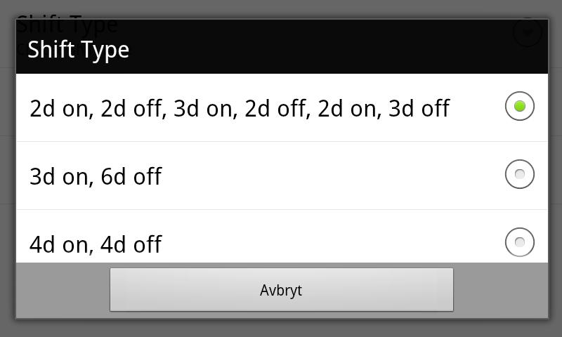 Easily display busy and free days by browsing through your calendar - even years ahead in time! Are you free for your daughters birthday? Your sons ball game? Easter? The shift calendar gives you the answer instantly and effortlessly.