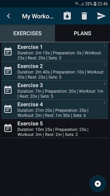 - Configurar ejercicios (tiempo de preparación, tiempo de ejercicio, tiempo de pausa, número de repeticiones)