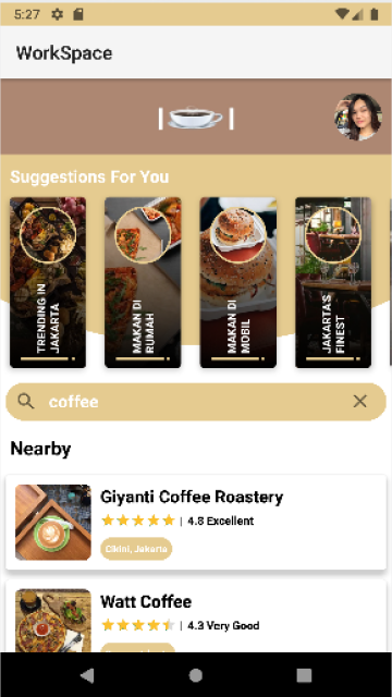 You can search places you want and see the rating, location, phone, operational hour, review, and price.