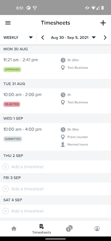 - Gestión de empleados: los gerentes de empleados pueden aprobar o rechazar solicitudes de licencia, hojas de tiempo y gastos. Ver los turnos de la lista.