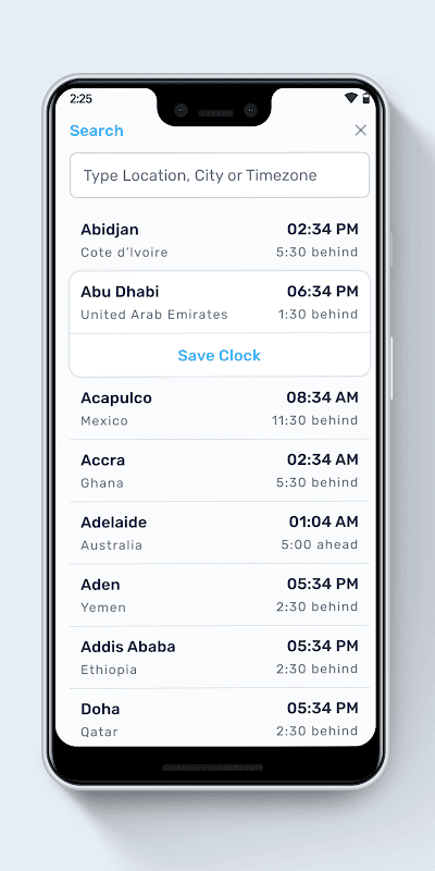 Ideal para usuarios de negocios, la aplicación le permite programar reuniones y configurar alarmas para cualquier zona horaria/ciudad/país, para que pueda evitar confusiones cuando viaja por trabajo.