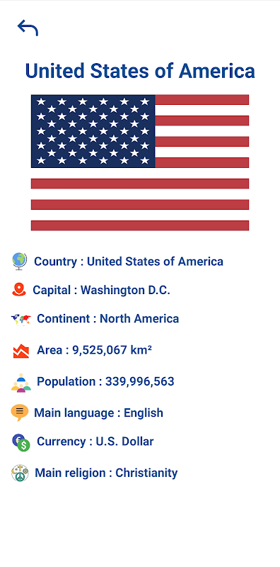 * Conozca las banderas y capitales de todos los países.
