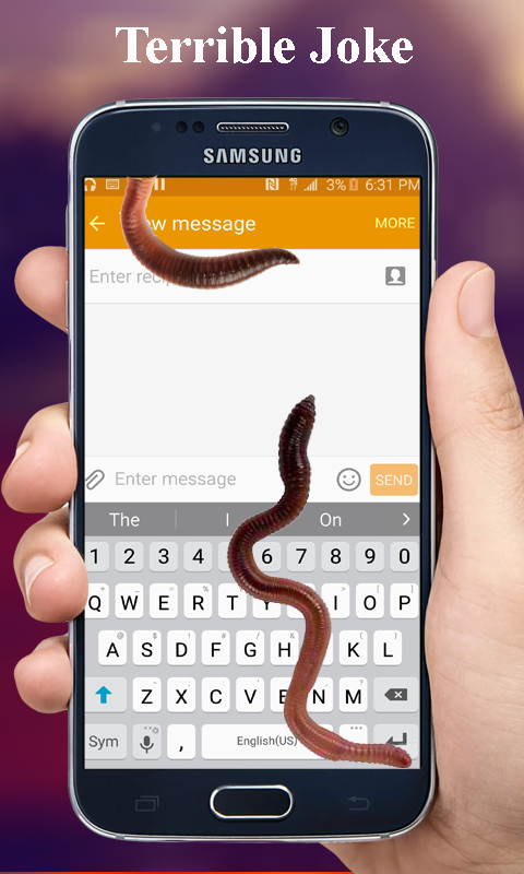 gusanos que se mueven en la pantalla del teléfono, asustar a sus amigos.