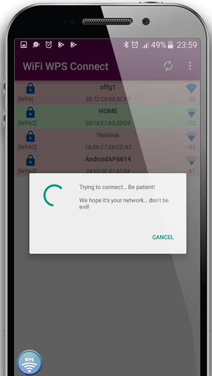The Application wps connect will try to connect to WPS enabled Wifi Routers that have the wps wpa vulnerability .