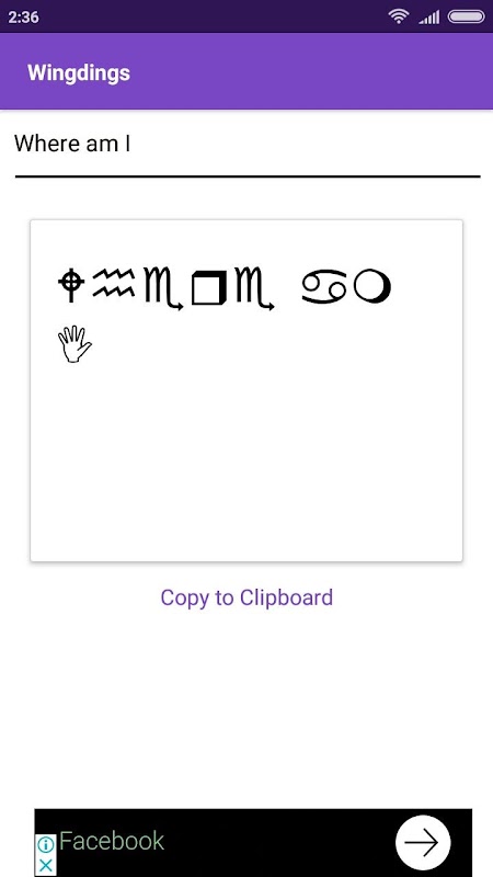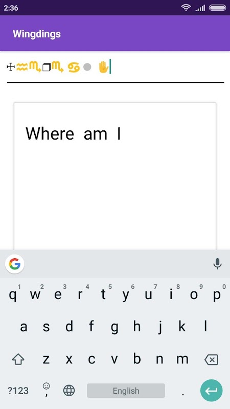 Some symbols are replaced with similar ones since android & google doesn't support all of wingdings.