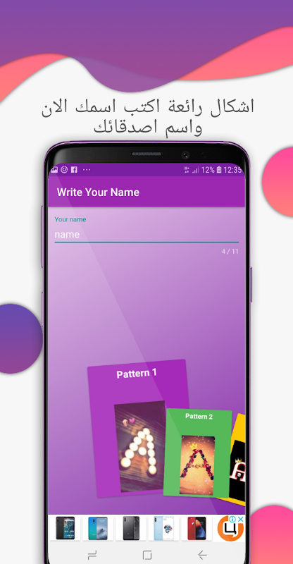 يعمل تطبيقنا باخد صورة من كل حرف في شكل جميل ا عليك سوي اختيار الشكل الذي يعجبك وكتابة اسمك به بعد دلك ستجد الصورة جاهز قم بضغط على ازر حفض وستجد الصورة في الوم الصور قم بارسالها لاصدقائك