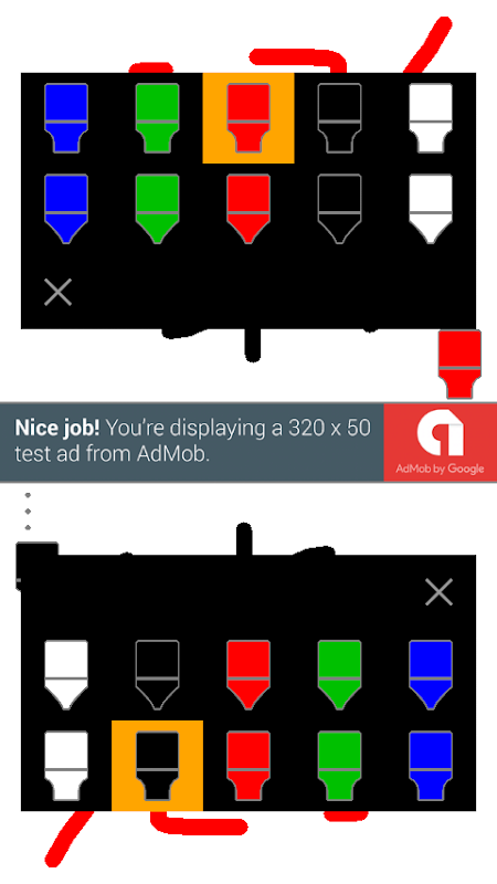 Se puede seleccionar un bolígrafo blanco, negro, rojo, azul, verde, grueso y fino.