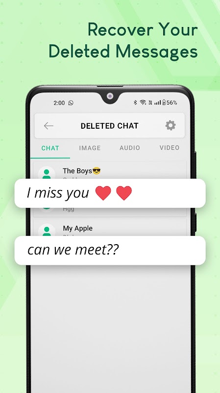 Interfaz fácil de usar: Nuestra interfaz intuitiva simplifica la navegación y la recuperación de chats eliminados. Con solo unos pocos toques, puedes recuperar mensajes y archivos multimedia perdidos sin esfuerzo.