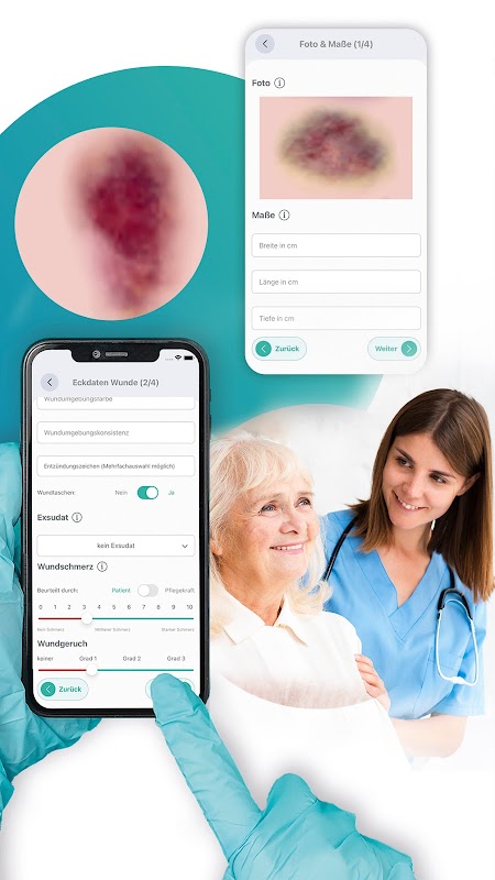 WUNDERA® es una aplicación móvil y fácil de usar para la documentación de heridas crónicas, que le ayuda a registrar heridas crónicas para su documentación y el MDK de forma rápida, sencilla y sin complicaciones, y guardarlas y reenviarlas de acuerdo con GDPR.