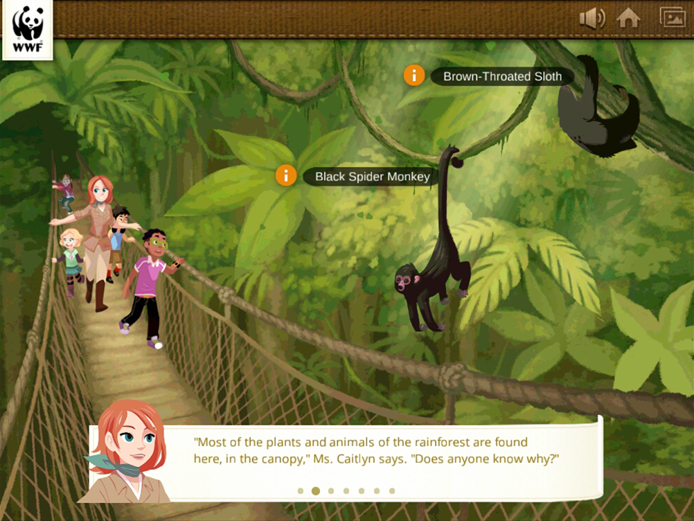Take a journey with WWF Explore! The app combines exciting animation and entertaining stories to highlight the places, species and people WWF works to protect. Follow a group of four students and their teacher as they journey to five of the world’s most ecologically diverse regions—Africa, Amazon, Arctic, China and Himalayas—with interactive scenes that bring each spot’s biodiversity to life.