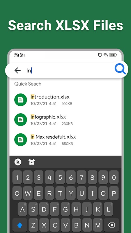 Una interfaz fácil de usar que permite a los usuarios ver todos los archivos de Excel desde el administrador de archivos o directamente desde la aplicación. XLSX Reader: la aplicación Excel Office es una herramienta recomendada para usted. Le permite leer hojas de cálculo en su teléfono en cualquier lugar y en cualquier momento. XLSX Reader es la forma más rápida de leer documentos de Excel en su dispositivo. La aplicación Excel está diseñada para administrar, ver y leer fácilmente todos los archivos XLSX. Este abridor de archivos de Excel le permite abrir documentos almacenados en la memoria interna o en tarjetas SD. Además, archivos descargados o enviados como archivos adjuntos de correo electrónico. Ahora encuentre rápidamente cualquier archivo XLSX que desee con la opción de búsqueda simple.