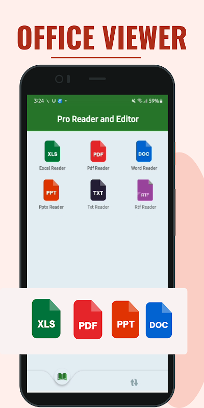 All Document Reader: PDF, excel, word, Documents le permite ver y leer todos los archivos de documentos, leer archivos PDF, doc, docx xls, ppt, txt, excel, xlxs muy fácilmente en su dispositivo móvil.