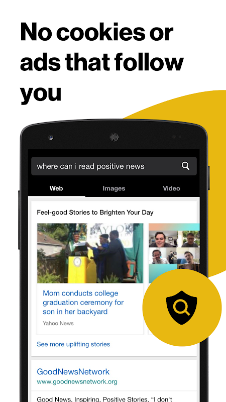 OneSearch by Yahoo es una aplicación de búsqueda gratuita orientada a la privacidad que le permite explorar lo que le interesa sin un perfil no deseado ni una orientación publicitaria. No almacena su historial de búsqueda y cifra sus términos de búsqueda para mayor seguridad. ¡Tome el control de sus datos hoy!