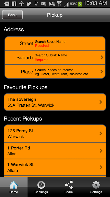 As it is linked to your Yellow Cabs Web Booker account you have access to your history & favourite locations from your Web Booker account.