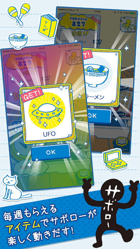 「中学校のテスト期間。つらくて、めんどくさい。そして忍び寄るサボローの誘惑・・・。楽しく、前向きに乗り切れたらいいのにっ!」そんなキミにぴったりのアプリがついに登場!