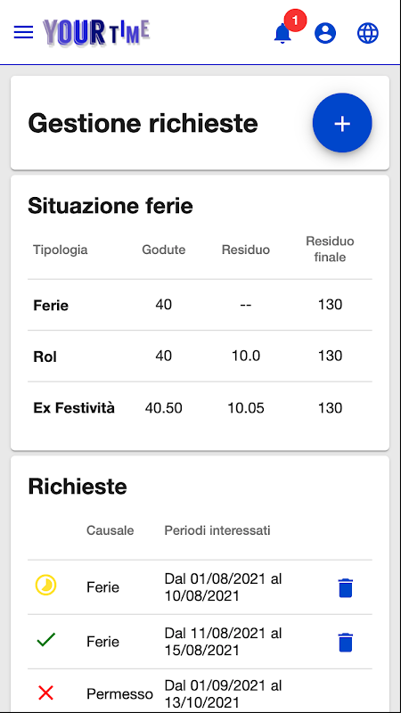 Olvídate de los formularios en papel o las solicitudes por correo electrónico. Con YOURtime, puedes enviar solicitudes de vacaciones y permisos en segundos, supervisar el estado de aprobación y estar siempre al tanto de los días restantes.