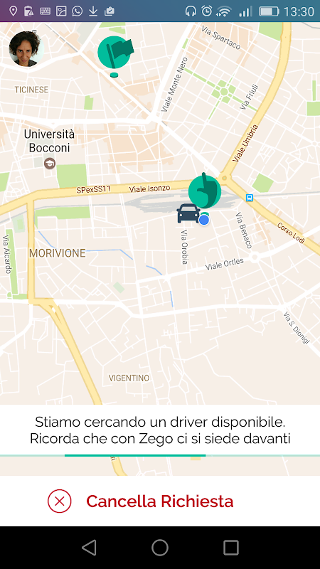 3. Quando invii la richiesta Zego trova in tempo reale l’auto con posti liberi più vicina e in pochi istanti ti invia il profilo di chi si é reso disponibile a darti il passaggio