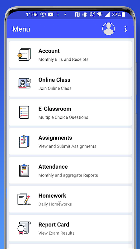 Aplicación Zenith English Medium School para estudiantes y padres.