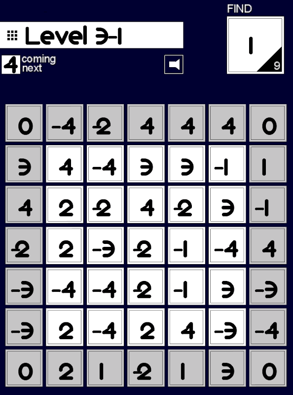 In Zeros to solve each level you need to find (and tap) a series of numbers in the central grid, but...