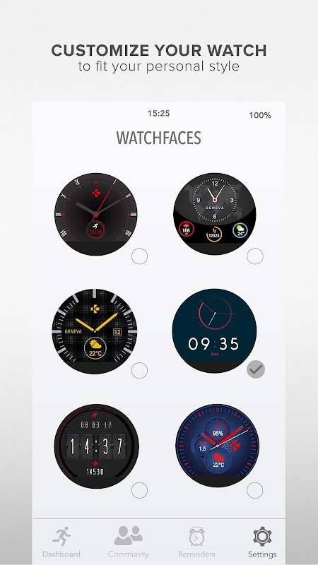 Desde la aplicación móvil gratuita ZeRound2, puede elegir un reloj de una variedad de diseños, establecer metas diarias y recordatorios. La aplicación te ayuda a rastrear tu actividad diaria, para que puedas mantener un ojo en tu rendimiento y progreso.