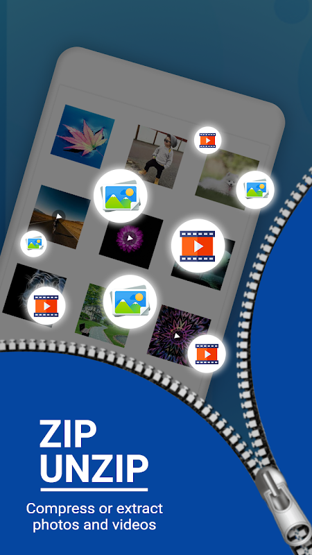 Comprima sus archivos de gran tamaño. Comprima y comparta archivos, documentos, videos y audios con la operación de compresión rápida de este lector y extractor de archivos rar. El lector y extractor de archivos Zip Unzip proporciona la forma más sencilla de controlar los archivos zip en los dispositivos de teléfonos Android. La función Zip le permitirá comprimir archivos grandes y compartirlos como archivos adjuntos de sus correos electrónicos. La función de descomprimir extraerá todos los archivos del archivo comprimido. La aplicación de lector de archivos zip unzip es una aplicación pequeña y de trabajo rápido para su teléfono Android. Comprima y comprima todos sus datos de gran tamaño con compresión de alta velocidad. Además, puede descomprimir sus carpetas comprimidas con él. Esta aplicación para crear archivos zip y descomprimir tiene una pequeña pero poderosa herramienta zip con funcionalidad para descomprimir y zip. Zip Unzip File Manager aplicación que administra todos sus datos en un solo lugar. La mejor aplicación para descomprimir archivos rar que es compatible con todos los dispositivos Android. Le ofrece comprimir archivos de forma rápida y segura para compartir datos más fácilmente. Esta aplicación de compresión admite y realiza casi todos los formatos de compresión y descompresión.